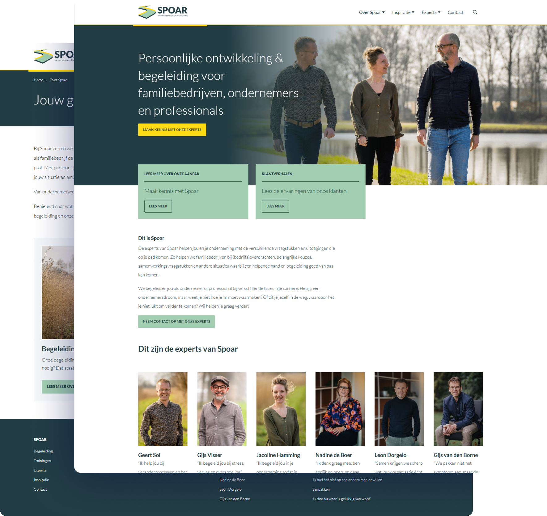 Het gezicht achter een bedrijf is erg belangrijk. Door deze duidelijk op de website naar voren te laten komen oogt het persoonlijker. De experts van Spoar staan daarom ook prominent op de website weergegeven. Om de gebruiker betrokken te houden is op elke pagina een mogelijkheid tot het inschrijven voor de nieuwsbrief toegevoegd.