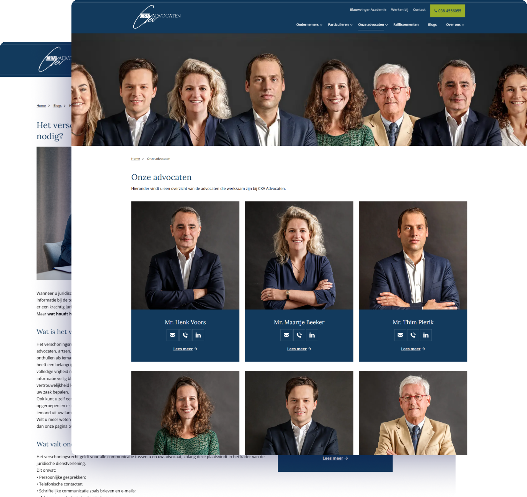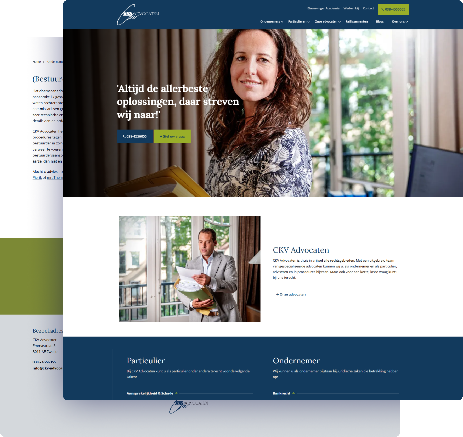 Of je nou een korte losse vraag hebt of hulp nodig hebt bij een procedure, bij CKV advocaten kan je altijd terecht. Acht verschillende gespecialiseerde advocaten helpen zowel particulieren als ondernemers met maar één doel voor ogen: het realiseren van de beste juridische oplossingen. En met dit nieuwe redesign kunnen zij hun (potentiële) klanten nog beter van dienst zijn.